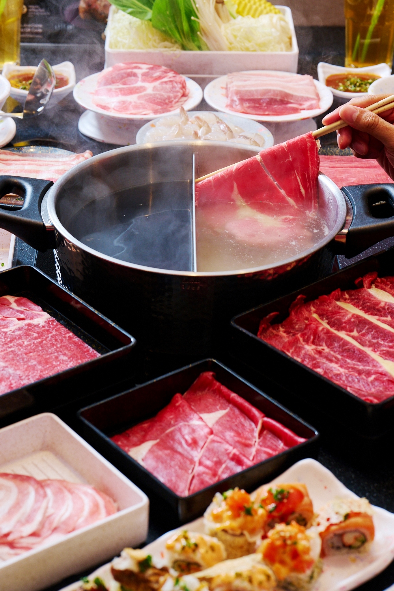 ขณะเดียวกัน ชาบูชิ ยังคงให้บริการบุฟเฟต์ “สุขอิ่ม” 399 บาท สำหรับลูกค้าประจำที่ต้องการประสบการณ์เต็มรูปแบบ ทั้งชาบู – ชาบู ซูชิ และเมนูอาหารรับประทานเล่น เช่น กุ้งเทมปุระ ตลอดจนผลไม้ ไอศกรีม และเครื่องดื่ม รวมกว่า 70 รายการ