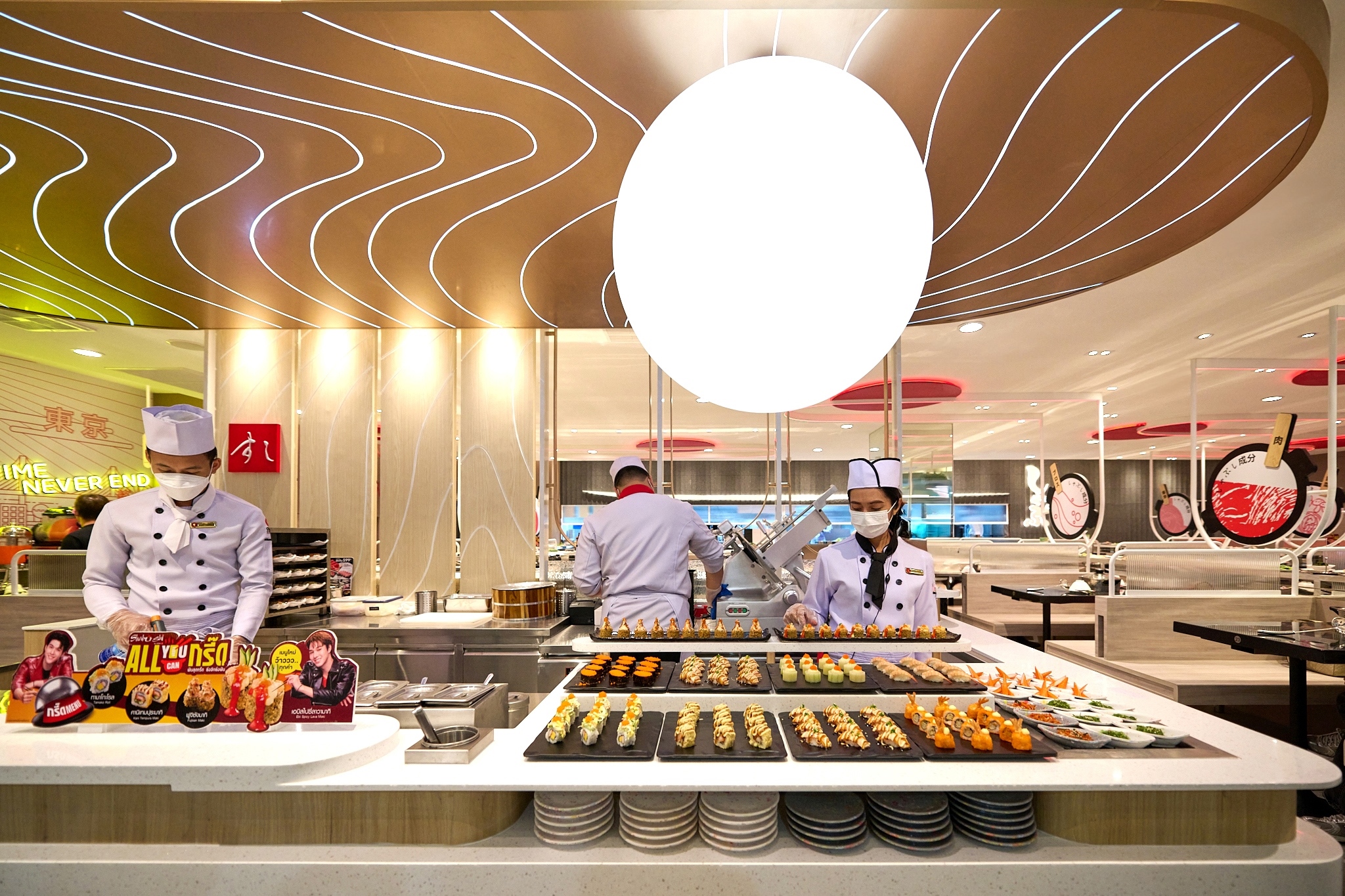 สำหรับสาขาในห้างสรรพสินค้า ซึ่งเป็นพื้นที่ที่ผู้บริโภคมองหาประสบการณ์เชิงไลฟ์สไตล์ ชาบูชิ ได้พัฒนาและเปิดตัว “ร้านดีไซน์ใหม่” เพื่อยกระดับประสบการณ์อาหารญี่ปุ่นในมิติที่เหนือกว่าทั้งด้านอาหาร บริการ และบรรยากาศ โดยชูจุดเด่นสำคัญอย่าง “Sushi-Master Station” ครัวเปิดที่ให้ลูกค้าได้ชมทุกขั้นตอนของการสร้างสรรค์ซูชิอย่างสดใหม่...คำต่อคำ ตั้งแต่การคัดสรรวัตถุดิบคุณภาพ ไปจนถึงการจัดเสิร์ฟอย่างประณีต ซึ่งช่วยสร้างทั้งความมั่นใจในคุณภาพและความประทับใจในทุกมื้ออาหาร